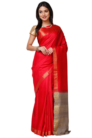 :Red Benarasi Tussar Pure Silk Sari By Shloka