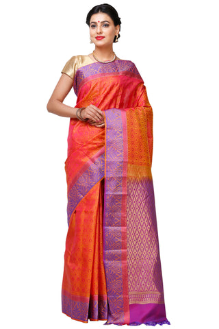 !Hand Woven Magenta Orange Kanjivaram Pure Silk Sari
